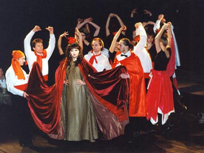 Известный драматург, сценарист, бард Юлий Черсанович Ким в 1997 году сделал потрясающий подарок Театру Эрмитаж (бывший Московский театр миниатюр) к десятилетнему юбилею, создав пьесу «Безразмерное Ким-танго». На протяжении многих лет артисты с азартом и юмором играют самые разнообразные сценки из нашей с вами жизни под ритмы страстного танца. Особую сюжетную линию и глубинный смысл в происходящем на сцене найти довольно трудно, но общая атмосфера праздника, карнавальной фееричности, масштабного шоу придает спектаклю совершенно особое обаяние и прелесть.