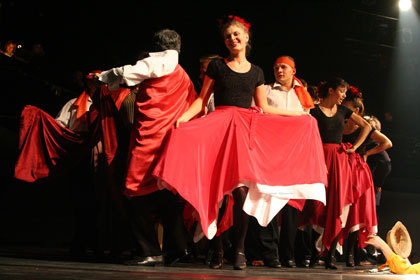 «… автор «тангоировал» все, что приходило в голову без какой-либо закономерности. Закономерность появилась уже в спектакле. 50 самовозникших танго превратились в 50 непрерывно перетекающих друг в друга представлений, нанизанных на режиссерскую мысль, которую я бы сформулировал так: Театр Левитина.
