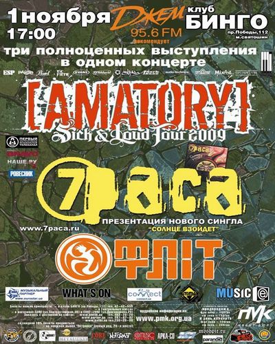 Ноябрь в клубе Bingo встретят «по-альтернативному»! Концерт при участии трех групп – Amatory, «7 раса» и «Фліт» – соберет киевских ценителей nu metal, альтернативы и punk-rock.