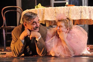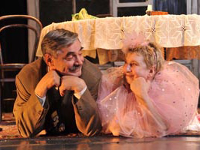 «Я играю бомжа, которого подослала мафия, чтобы выселить двух блокадниц-старушек из квартиры. Они брошенные, гонимые, забитые, а гонит их человек, такой же изгнанный и забитый, как и они сами. И они объединяются, потому что у них родственные судьбы. И в этом трагедия – кто кого душит? Гонимые – гонимых. Жанр этой пьесы – трагикомедия, но я бы назвал его трагифарсом. Это пьеса о доброте, о том, что нужно жалеть друг друга», рассказывает актер Александр Панкратов-Черный, играющий в этом спектакле одну из центральных ролей.