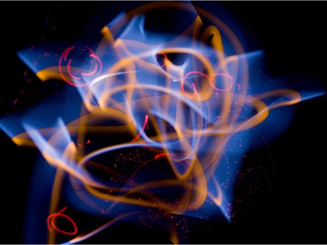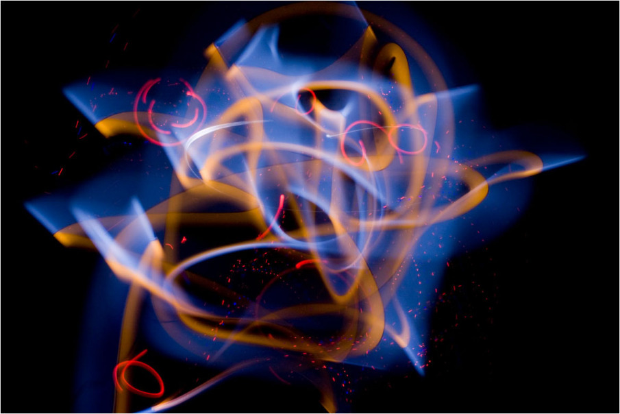 Выставка Light Painting представляет работы группы Ganda в смешанной технике «световой живописи». Она заслуживает внимания, как минимум, своим новаторством. Изображения, несомненно, приятны для глаз. Однако молодым художникам еще есть куда расти.