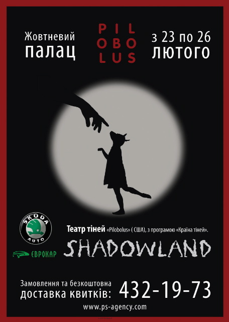 Удивительнейший перфоманс «Страна теней» (SHADOWLAND) представляет американский Театр теней «Пилоболус». Загадочная женская душа раскрывается посредством невообразимого смешения современной хореографии, театра теней, мимики, гимнастики, акробатики, японского искусства костюмирования «дзентай» и изрядной порцией юмора и иронии. Ошеломляющие возможности человеческого тела на грани невозможного демонстрируют танцовщики. Фантастические тени, создаваемые на передвижных полотнах в нескольких уровнях, поражают богатством воображения.