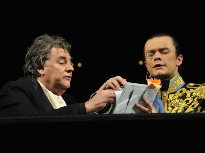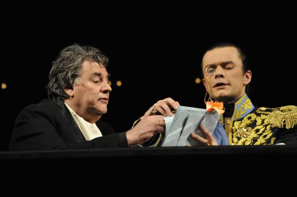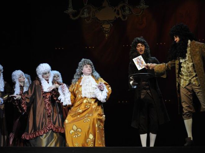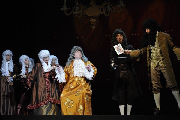 Абсолютно выбивающийся из привычного репертуара Театра Сатиры спектакль «Кабала святош» препарирует все те же конфликты, остающиеся актуальными веками – молодость и старость, художник и власть. Как говорит художественный руководитель Театра Сатиры и исполнитель роли Мольера Александр Ширвиндт, «Над нами довлеет это гадкое слово «бренд». Публика идет в Театр Сатиры посмеяться, а иногда и просто похихикать. И вдруг они нарываются на что-то непонятное. Я очень боялся, что начнут кричать: «Шуток давай. Верни деньги назад». Молчат. Тихо. Вообще, когда в зале тихо, никто не кашляет, не хихикает и не аплодирует, это замечательно. И для нас это непривычно». Интересно, что актер вышел на театральную сцену после восьмилетнего перерыва.