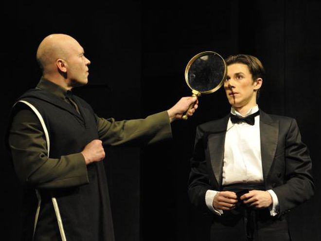 А драматургу и писателю Михаилу Булгакову действительно было, что сказать между строк. Легко ли быть гением рядом с тираном? Что есть искусство и как выжить, не навредив себе, но оставаясь при этом свободным в творчестве. От великого комедиографа Мольера, пытающегося угодить Людовику, до Булгакова пытающегося выжить в эпоху Сталина – параллели абсолютно очевидны. Но режиссер спектакля «Кабала святош» Юрий Еремин решил не ограничиваться полунамеками автора, а прямо перенес финал пьесы в «наши» дни.