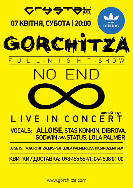7 апреля этого года "Gorchitza" снова приглашает вcех в Сrystal Hall, чтобы посмотреть новое шоу "No end".