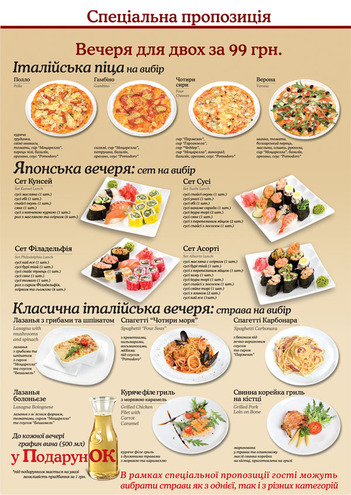 двоих всего за 99 грн.! И, конечно же, в подарок от заведения - графин
