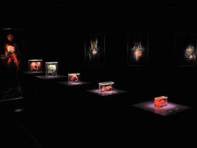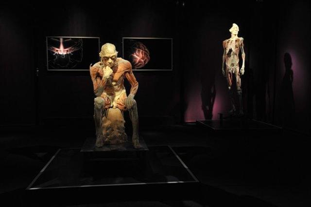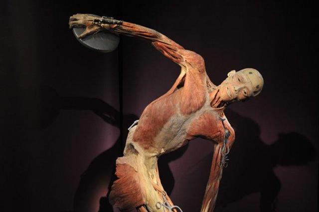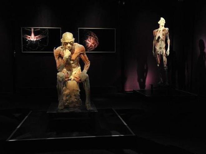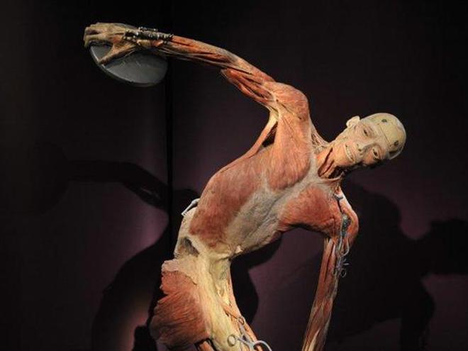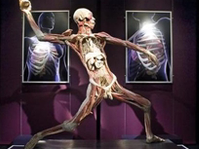 Экспонатами являются человеческие тела с обнаженными мышцами и органами. Тела и органы настоящие - их прежние владельцы завещали себя науке.