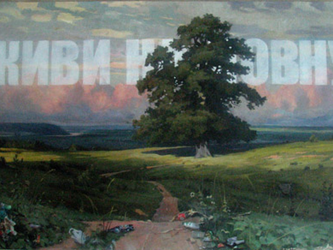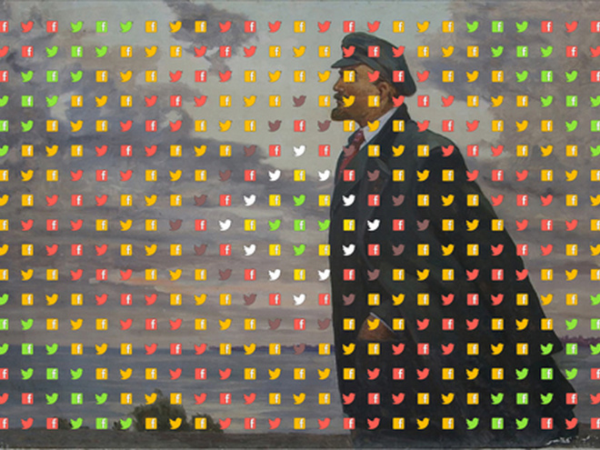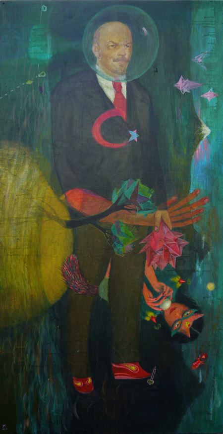В экспозиции, в разных ипостасях, представлен символ власти прошлого века - Ленин-космонавт от художницы Хасиловой и замысловатый портрет вождя народа от одного из ярких представителей украинского современного искусства Александра Ройтбурда, ситуативные осовремененные соцреалистические композиции из знаменитого цикла Бабчинского "Диалектика". Работа Марии Гончар под названием "Технологии революции" противопоставляет современные методы информационной войны стратегической методам Октябрьской революции, на примере Арабской весны и организации митингов на Болотной.