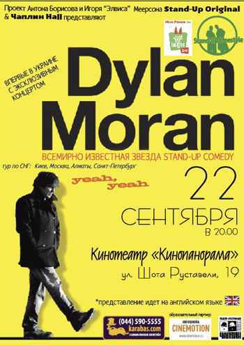 Знаменитый ирландский актер, комик, сценарист, писатель и режиссер. Звезда ситкома "Black Books", а также актер фильмов "Зомби по имени Шон" "Беги, толстяк, беги" и "Ноттинг Хилл". Самый молодой лауреат престижной комедийной премии Perrier Comedy Awards и легенда stand-up Дилан Моран представит в Киеве свое шоу о жизни с ее нелепыми хитросплетениями.