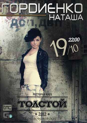 Этой осенью состоится второй сольный концерт артистки Universal Music Наташи Гордиенко для киевской публики. В июне певица с успехом презентовала программу на большой площадке Crystal hall. Осенний концерт запланирован на камерной рок сцене модного ресторана-клуба "Толстой", который понемногу становится новой меккой украинских меломанов.