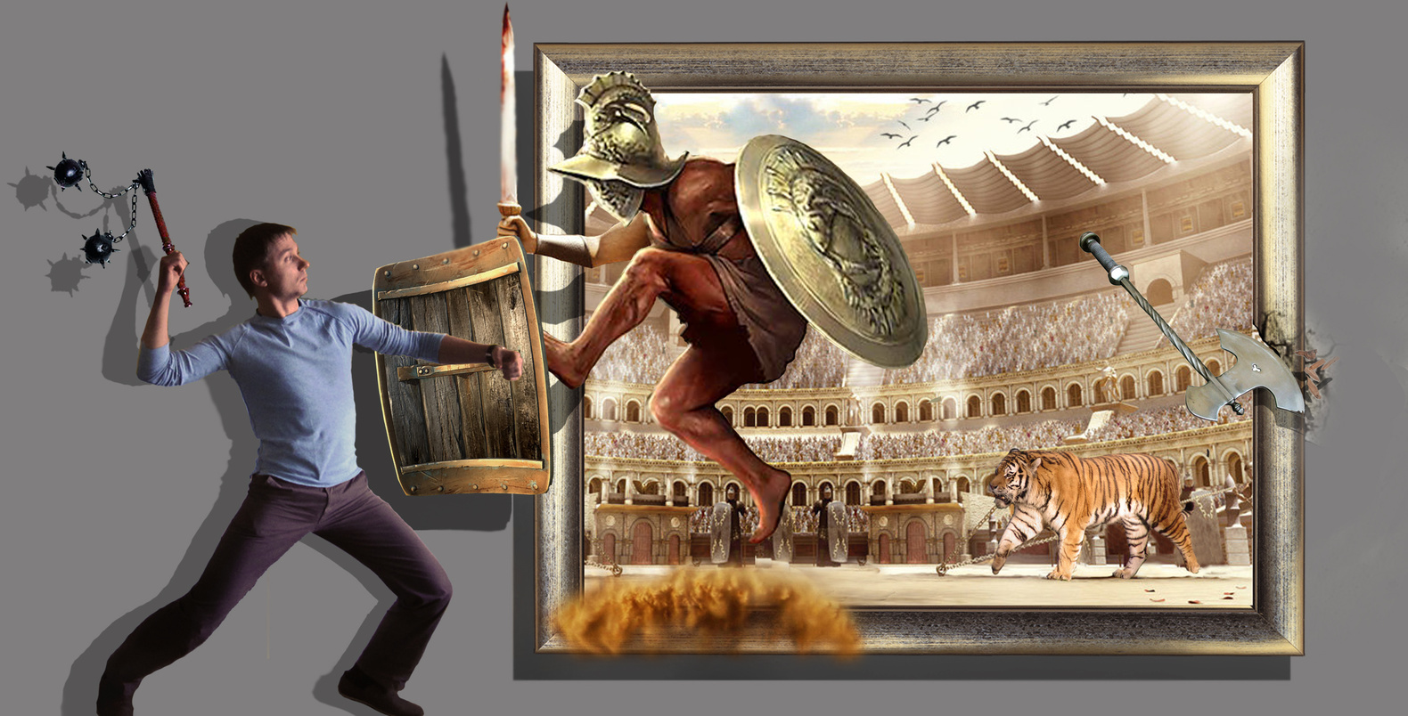 Уникальный проект, как для Киева, так и для Украины в целом. Компания WallStreet предлагает свой вариант интерактивной живописи создающий объем, глубину и игру картины со зрителем. Игра света и тени максимально способствует этому. Выставка будет интересна как детям, так и более старшим посетителям. Гладиаторы, слоны и многое другое оживают и контактируют с посетителями. Также на выставке Вас ждет эксклюзивная возможность прикоснуться к 7-ми чудесам света. Приходите и получите незабываемые эмоции.