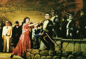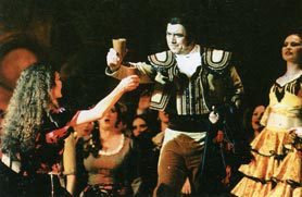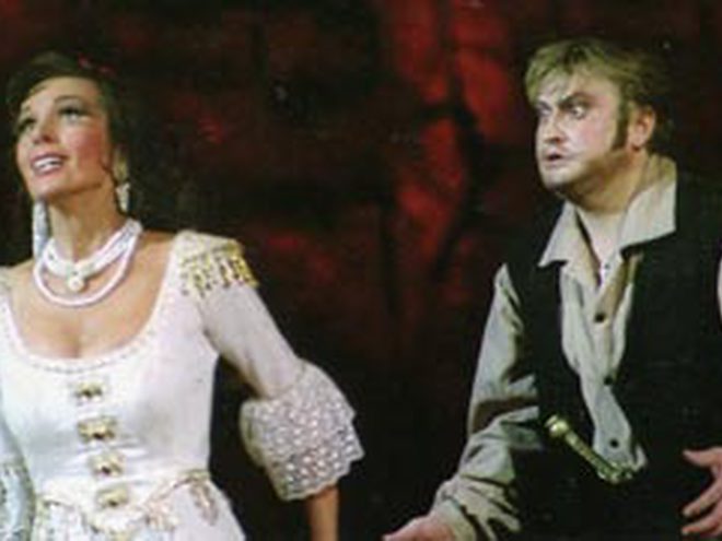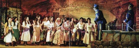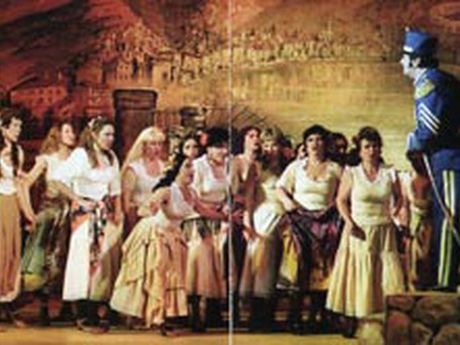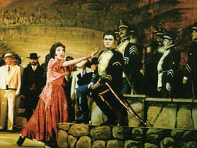 По примсі коханої, драгун Хозе вимушений дезертирувати й приєднатися до контрабандистів. Але навіть ця жертва не допомагає йому повернути любов пристрасної циганки Кармен, що засумнівалася в його відчутті. Та й нова пристрасть до тореодору Еськамільо вже оволоділа навіженою циганкою. Вперше опера "Кармен" була поставлена на паризькій сцені 3 березня 1875 року й отримала вельми суперечливі відгуки. Першим французький композитор Жорж Бізе вивів на оперну сцену простих людей, і це було украй незвично для публіки. Основою для лібрето послужила новела Просперо Меріме, але сюжетна лінія при цьому була ґрунтовно перероблена. Неодноразово "Кармен" переробляли на сучасний зразок. Але московський режисер Микола Кузнєцов при постановці спектаклю на сцені Національної опери вирішив звернутися до класичних витоків. Тут можна побачити абсолютно впізнанні мізансцени і декорації, але при цьому спектакль вийшов дуже "живим" й динамічним.