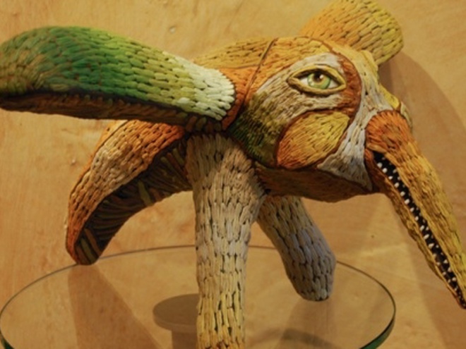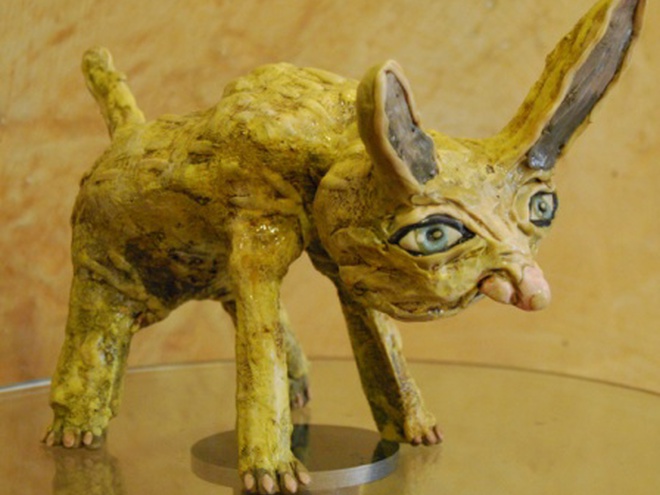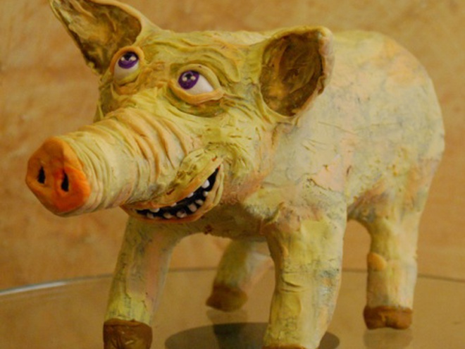 Скульптор-примитивист Григорий Столбченко, он же известный в художественной тусовке как Груша, уже 20 лет делает «пецки» – комические статуэтки. Кого только нет в его коллекции: пионеры, рыдающие хулиганы, ожиревшие колибри. Но больше всего Груша любит вырезать из дерева веселых зверушек, в частности, зайчиков, белочек, мышек. Все они с виду то ли накуренные, то ли вдрабадан пьяные. Сам художник иронично называет их «одиозными персонажами».