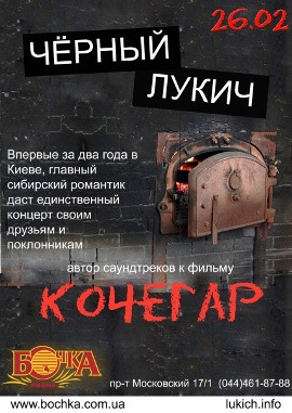 Основателем этой культовой группы стал Вадим Кузьмин. Странно, но оказывается, что последний раз в Киеве «Черный Лукич» были аж два года назад! Тем не менее, к моменту этой долгожданной встречи ребята отлично подготовились: публике представят материал из альбома «Полярная звезда», который появился в 2010 году. Не пропустите этот концерт, ведь неизвестно, когда группа снова заедет в Киев.