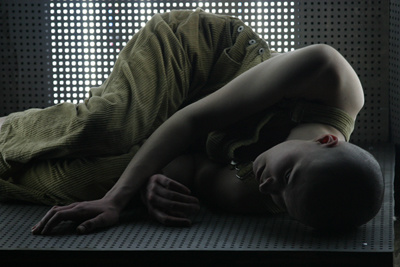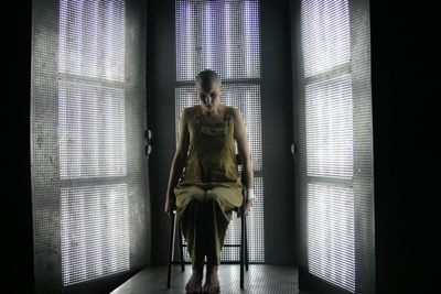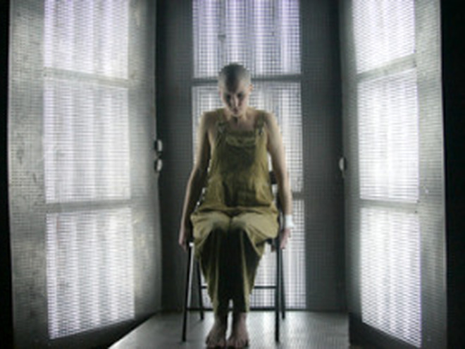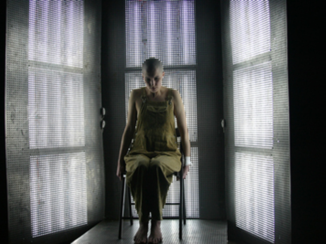 Это своеобразный психоделический сеанс, во время которого физического действия практически не происходит. В небольшой клетушке, похожей то ли на кресло психотерапевта, то ли на исповедальню, сидит юная, нервная и погруженная в себя девушка. Одета она в мешковатый комбинезон, голова ее обрита. То, что произносит героиня, по-настоящему страшно…