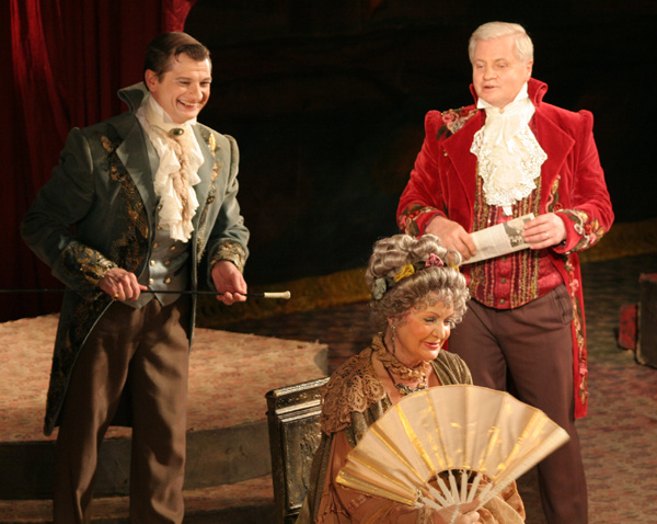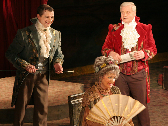 Это - спектакль-игра. Здесь, на фоне застывших манекенов и тяжелых, запыленных драпировок оживают и включаются в игру даже суровые фамильные портреты семейства Сэрфесов. Да, тут играют все. Разница заключается лишь в характере игры, ибо у одних она бесшабашна, добра, по-юношески задорна, беспечна, а у других - чванлива, желчна, проникнута подлостью, интригой, с оттенком скандала и злословия. Но финал комедии, как ему и подобает быть, светел. Великосветские сплетники, завистники разоблачены, а любовь торжествует, ликует, упивается победой.