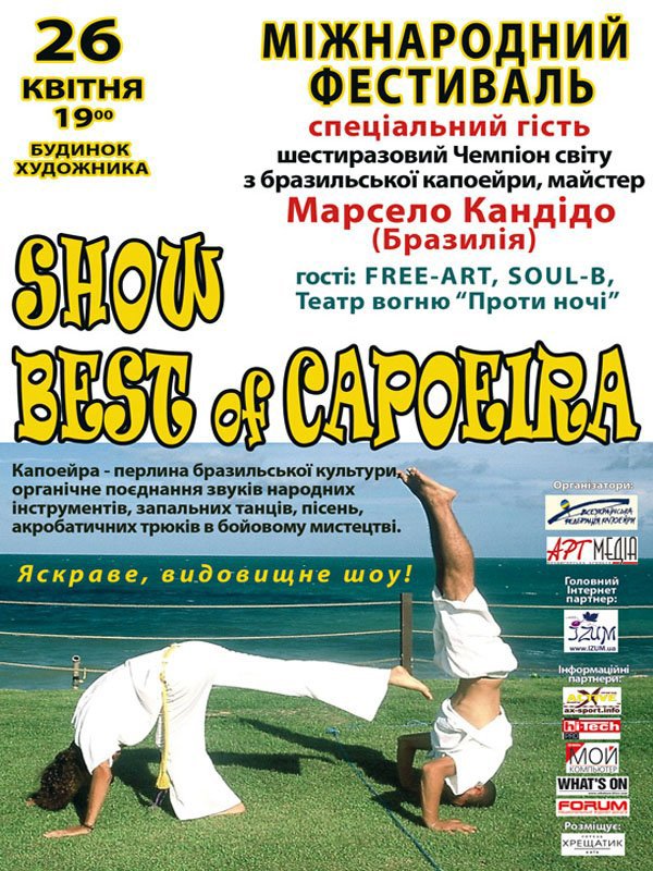 Гвоздем фестиваля будет выступление шестикратного чемпиона мира по бразильской капоэйре, мастера Марсело Кандидо. Кроме поражающих воображение боевых схваток на фестивале выступят экстремальные танцевальные коллективы: Free-Art, Soul-B, и театр огня «Проти Ночі».