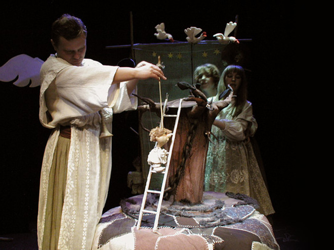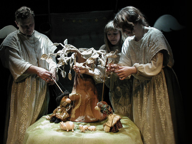 Кто не знает детскую считалочку про торбу, которая катилась? Но на этот раз в торбе не только хлеб и пшеница, а еще и известные герои украинских сказок и славянского фольклора. Тут тебе и Дед с Бабой, и Змей со Змеючкой, и Ивасик Телесик и многие другие. Яркие и веселые герои с помощью настоящих ангелов-актеров расскажут самым маленьким зрителям о сотворение мира.