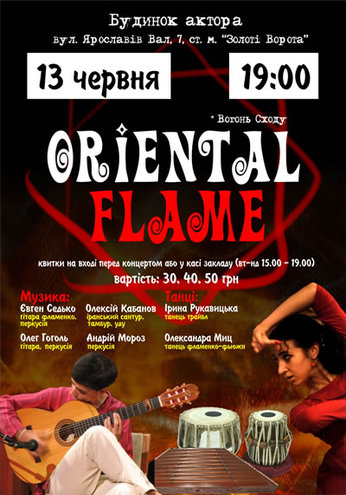 Мода на музыку испанских цыган – фламенко – постоянно испытывает то взлеты, то падения. Периодическим концерты и фестивали фламенко собирают тысячи людей, чтобы спустя несколько месяцев кануть в забытье. Это же можно сказать и о концерте Oriental Flame, который пройдет в Доме Актера. Это очередная попытка киевской группы музыкантов напомнить о притягательности экзотических ритмов.